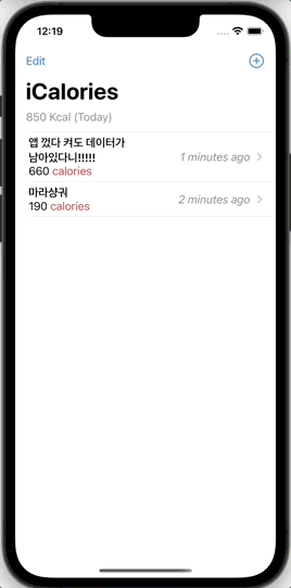 icalories 에서는 App 파일에서 전체에 데이터를 뿌려준다. 다른 Core Data도 마찬가지일까?