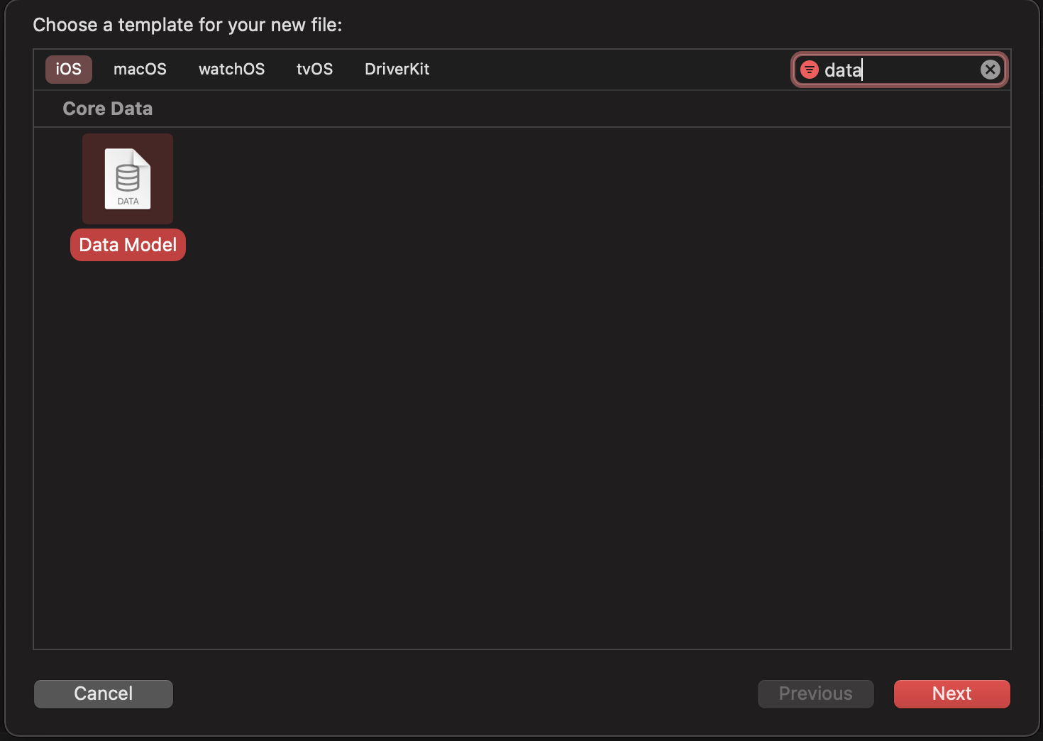 처음에 Use Core Data 체크 안해도 new file을 통해 Data Model 파일을 생성할 수 있다. 생성한 후,
