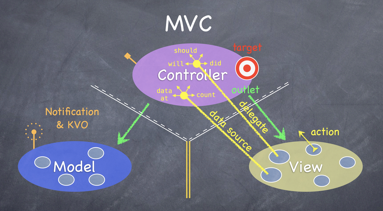 View에서 유저의 action이 발생하면 Controller에 있는 target이 이를 받아들이고 작업을 수행한다