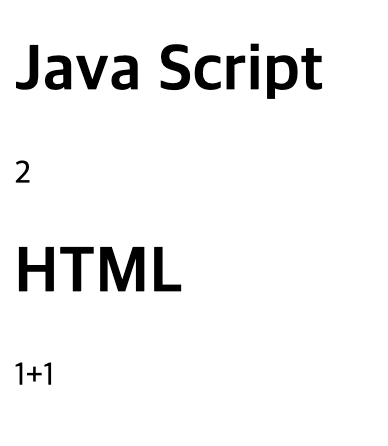 JS는 1+1을 컴퓨터가 수식으로 인식하여 계산한 결과값을 출력해준 반면, HTML은 오직 글자 그대로만을 화면에 출력했다.