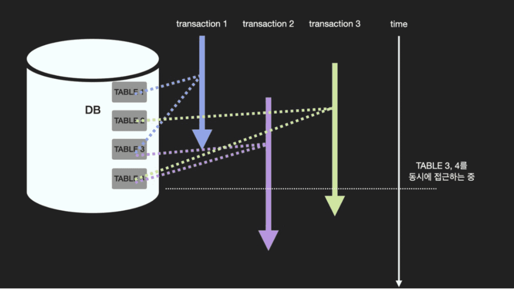 transaction3이 데이터에 접근하여 Lock을 걸면 transacion2는 Write되고 Unlock될 때까지 기다렸다가 데이터에 접근할 수 있다.