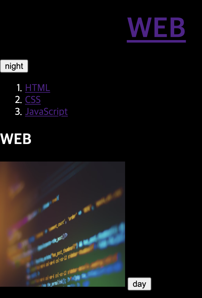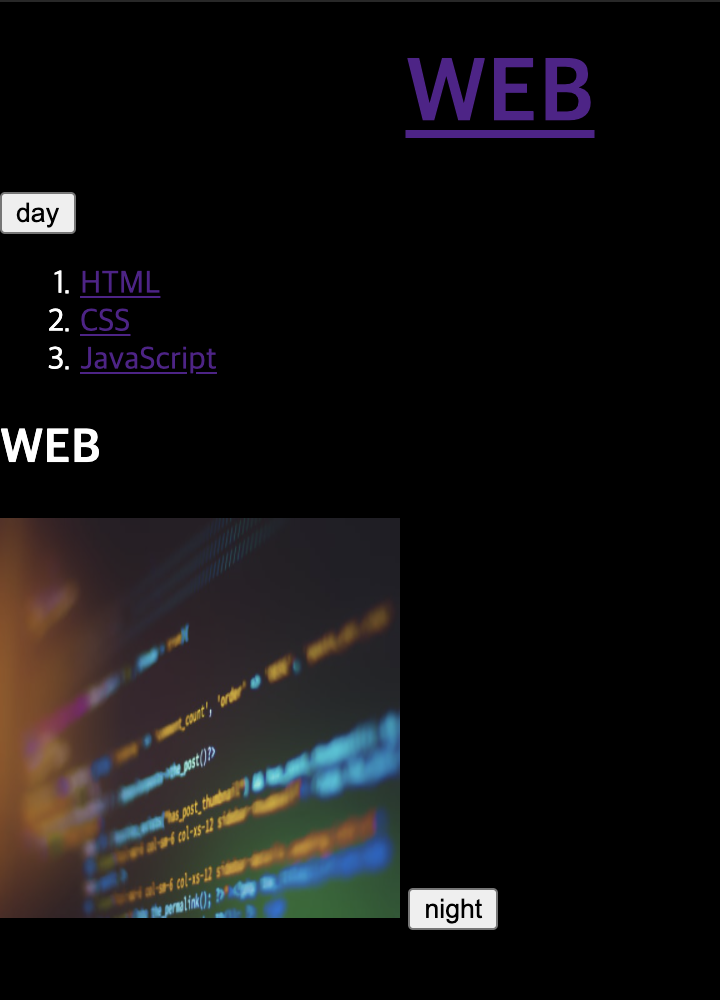 기존의 night 버튼을 웹 페이지 하단에서도 볼 수 있게 코드를 복사 붙여넣어보자. 그러고 잘 가동되는지 확인해보자.