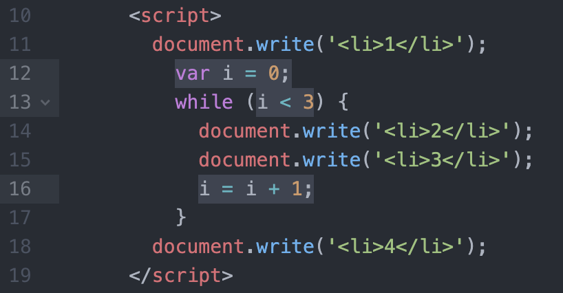 while ( i < 3 ) : i 가 3보다 작으면 밑의 코드를 출력한다.
