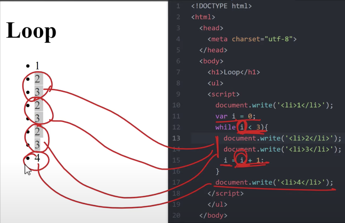 var i = 0; : 초기의 i 를 0으로 설정한다.