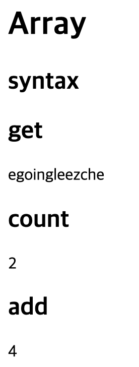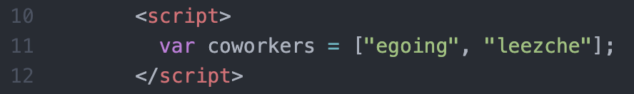 ["egoing", "leezche"] 자체가 배열이고 coworkers라는 이름을 붙였다.