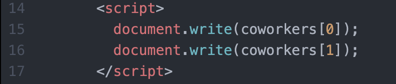 그리고 배열의 개수(coworkers.length)를 출력한다. → 4가 출력된다.