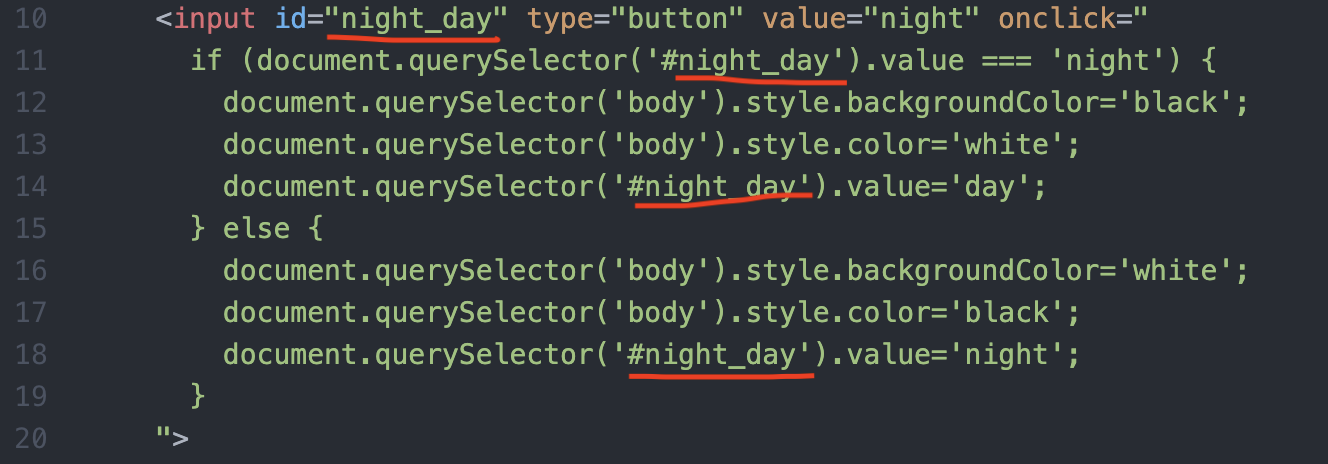 document.querySelector('#night_day') 가 자기 자신에게 id을 부여하고 이를 가리키는 코드이기 때문에 이것을 지우고