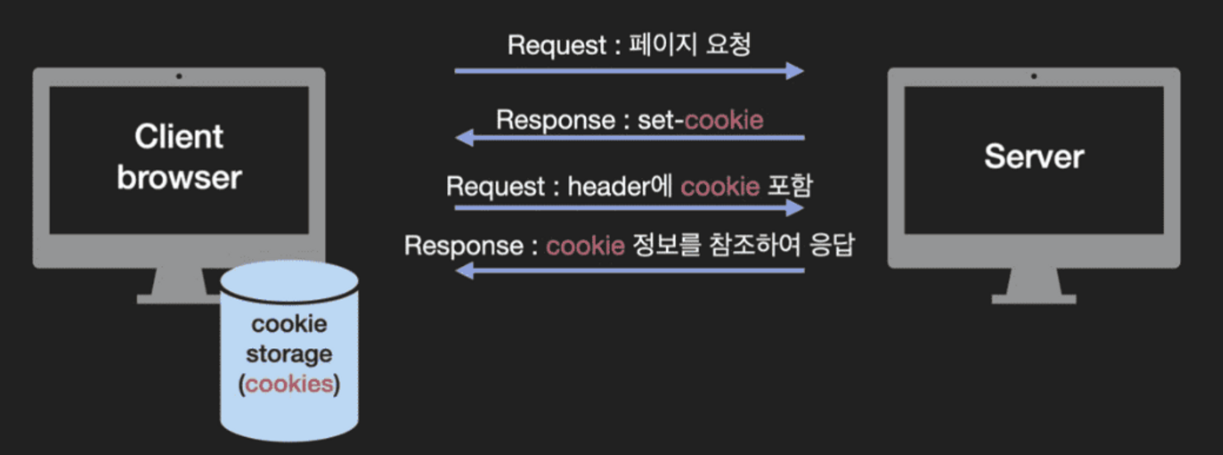 - 서버는 클라이언트의 요청에 응답한 정보를 Response의 header에 set-cookie 형태로 담아서 보낸다.