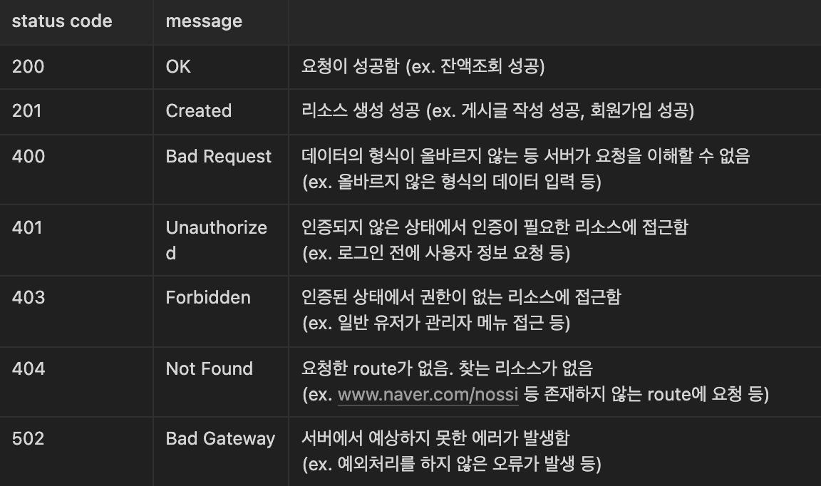status code는 서버의 HTTP Response에서 status line에 포함된 code이다. 이는 서버의 응담에 관한 간단한 설명이다. 어떤 것들이 있는지 알아보자.