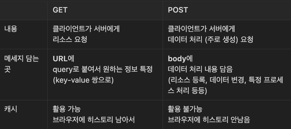 POST에서는 메세지를 body에 담기 때문에 브라우저 히스토리도 남지 않고 아무것도 남지 않는다. 그래서 캐시를 활용하지 못한다.