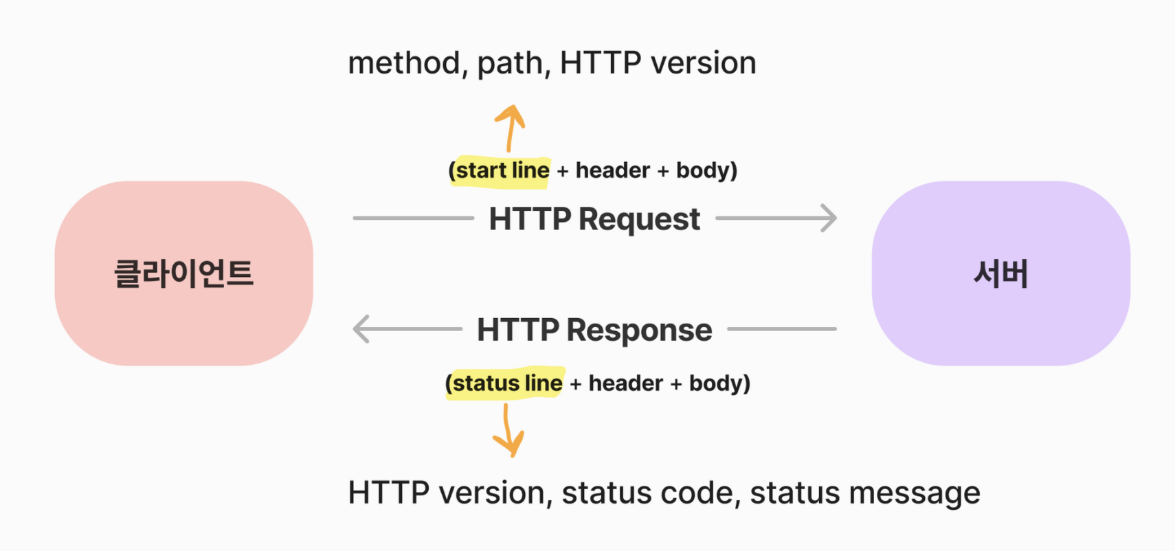 클라이언트는 서버에게 HTTP Request를 보내고, 서버는 클라이언트에게 HTTP Response를 보낸다.
