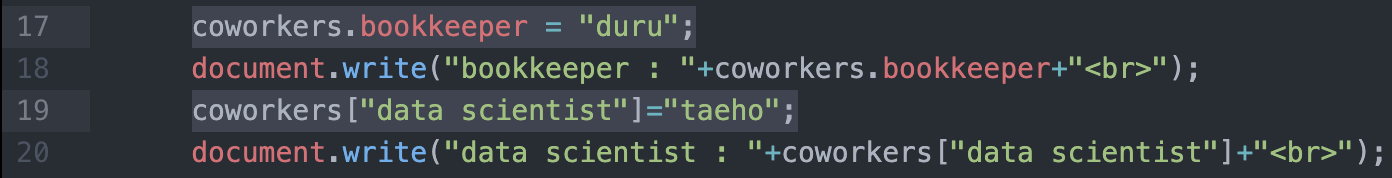 객체를 소환할 때는 객체이름.key값 을 이용한다.