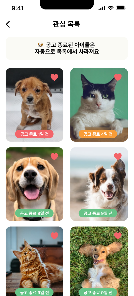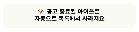 - '공고 기한이 지나면 안락사 처리됩니다' -> '공고 종료된 아이들은 자동으로 목록에서 사라져요'