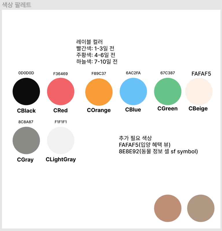또한, 단어의 디테일에도 신경을 썼다. 시장 조사를 하면서 사람들이 동물을 지칭할 때 '아이들'이라는 단어를 많이 쓰는 것을 볼 수 있었다. 그리고 전체적으로 따뜻한(?) 어투로 말씀하시는 문화가 느껴졌는데, 그 색깔이 우리 앱에서도 느껴졌으면 좋겠다고 생각했다.