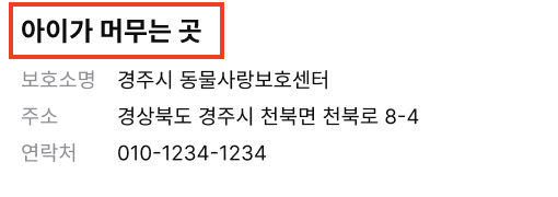 - '유기 동물 보호소' -> '아이가 머무는 곳'