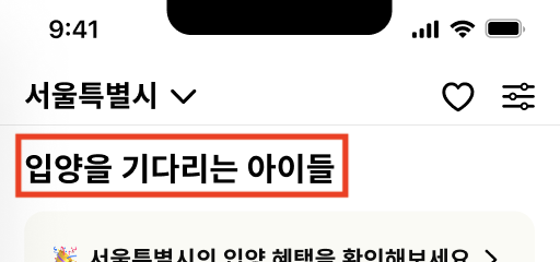 - '유기 동물 입양 공고' -> '입양을 기다리는 아이들'