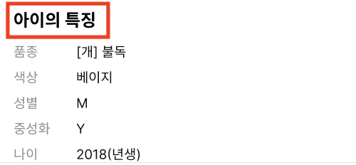 - '동물 상세 정보' -> '아이의 특징'
