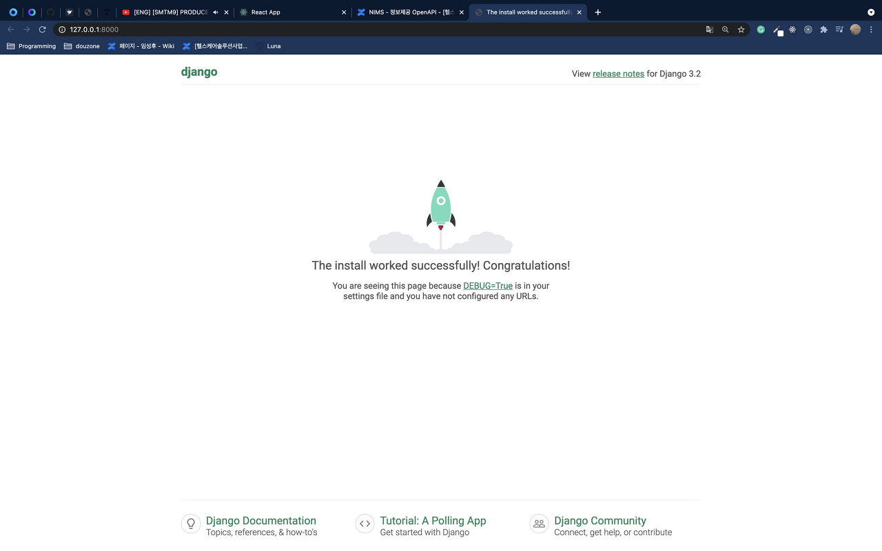 자, 가상환경을 설치하고 파이썬을 설치하고 프로젝트를 생성하고 어플리케이션을 생성하였다.