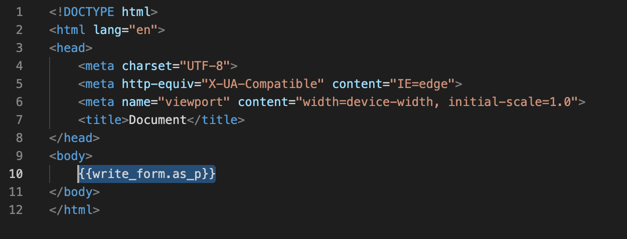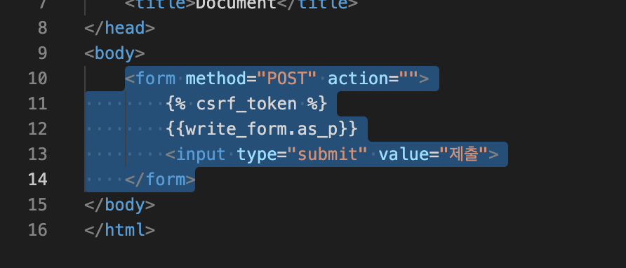 WriteForm을 가져와서 write_form으로 다시 변수 이름을 선언해주고 , 이를 return 구문에서 다시 동일한 이름으로 write_form으로 지어준다.