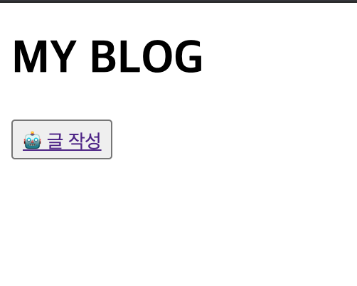 가장 먼저 CRUD 중 Create 먼저 해보자! (글 쓰는 기능 구현하기) create에서는 새로운 객체를 생성하여 데이터를 저장하는 역할을 만드는데, 그러기 위해서 데이터를 작성/입력 하는 '글 쓰기' 버튼을 만들어보자.