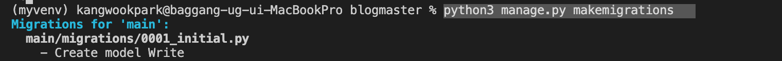 + 우리가 models를 수정할 때마다 두 가지 구문을 계속 쳐줘야한다. (장고가 데이터베이스를 인식하게 하는 과정)