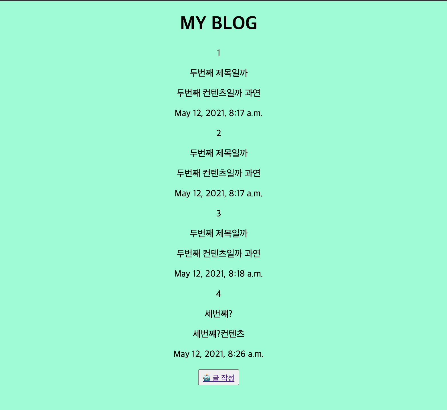 블로그라면 ! 우리가 작성한 타이틀과 컨텐츠를 인덱스 화면에 띄워야하지 않겠는가? 이걸 해보자