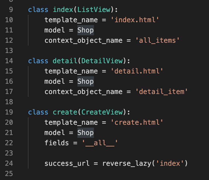 views.py에서 제일 크게 달라진다. 일단 class를 django에서 가져와야 한다.