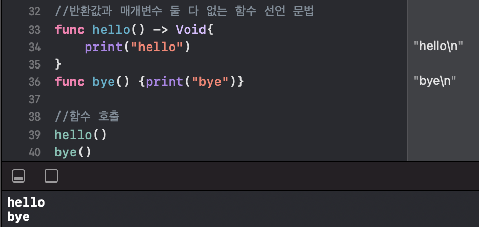 func 함수이름() -> Void{