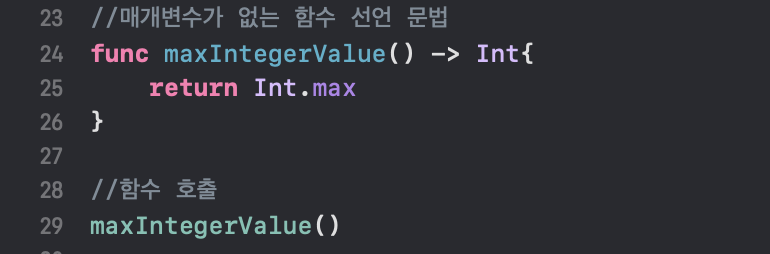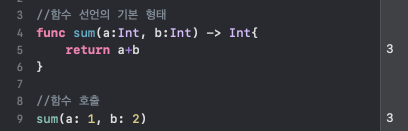 func 함수이름(매개변수1:데이터 타입, 매개변수2:데이터타입) -> 반환 타입{
