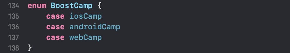 에러가 발생하는 것이 아니고, case의 이름을 원시값으로 사용한다.