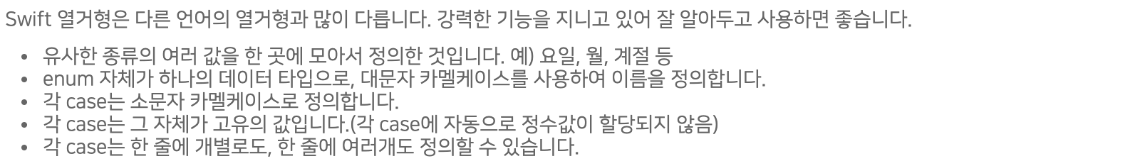 Swift의 열거형에는 메소드도 추가할 수 있다.